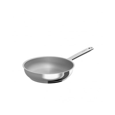 This 24 cm frying pan is just the right size for frying a meal for two. Made from high-quality recycled stainless steel for extra durability and hygiene, it has a capsule base that distributes heat quickly and evenly over the entire surface on any kind of cooktop. For transferring the pan from the hob to the table or the dishwasher, the sturdy handle provides a secure and comfortable grip so you can lift a full pan safely.