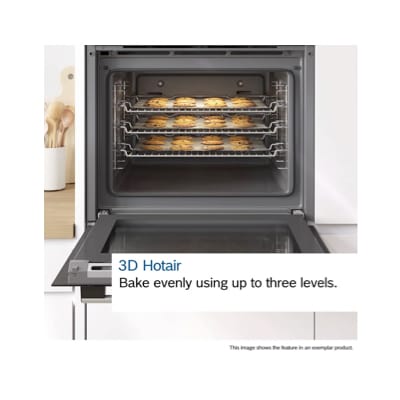 Now you can bake a batch of goodies, like cookies, on up to three levels simulaneously. The 3D Hotair fan distributes heat quickly and evenly throughout the interior. You can also cook two dishes at the same time, in one oven – so you can bake lasagne for tonight and muffins for tomorrow in one go, without mixing flavours.