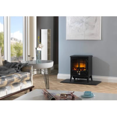 Installation: Freestanding unit with a 13 amp plug—no chimney or flue required