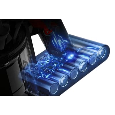 The motor spins at up to 110,000rpm to generate up to 115 Air Watts for powerful Dyson performance, with no loss of suction[4].