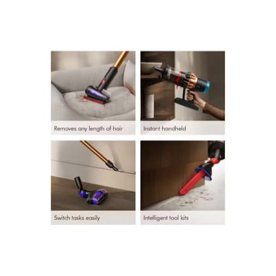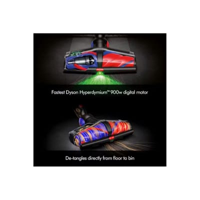 Dyson’s new Hyperdymium 900w digital motor produces up to 315 Air Watts of fade-free suction. Dyson’s longest runtime in a cordless vacuum, delivers up to 70 minutes of run time for whole-home cleaning.