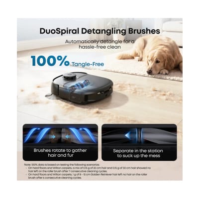 Automatic Detangling: DuoSpiral detangling brushes automatically prevent fur and hair from clogging up your robot vacuum. No mess, no stress, just a hassle-free cleaning experience.