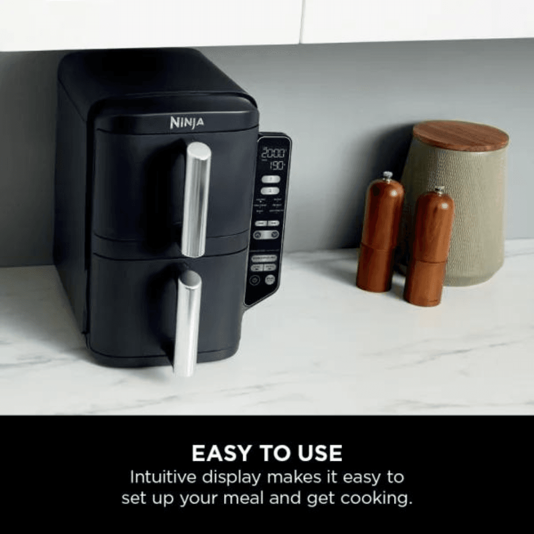 Easy to use: The sleek control panel is positioned to the side for easy access, so it’s simple to select your desired settings in each drawer. We know life is busy and full of distractions, so Ninja air fryers automatically stop cooking when the digital timer ends. There’s a chef-created Recipe Guide in the box, packed with ideas to get you started and cooking charts to help make the most of your new appliance.