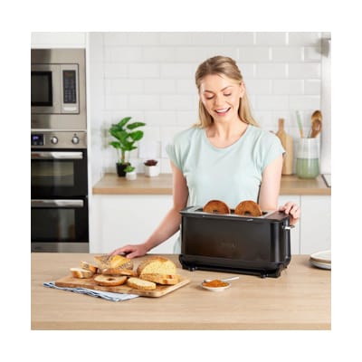 Enjoy even, edge-to-edge toasting to your perfect shade. Not just for breakfast, grill artisan bread loaded with toppings, cheese and ham croissants, brunch muffins, pizza bagels, quesadillas, even fish finger sandwiches and loaded potato waffles. Press café-style paninis, grilled cheese sandwiches and toasties filled with all your favourite ingredients using the included panini press accessory. You can even reheat pizza slices to restore that fresh-out-of-the-oven finish.