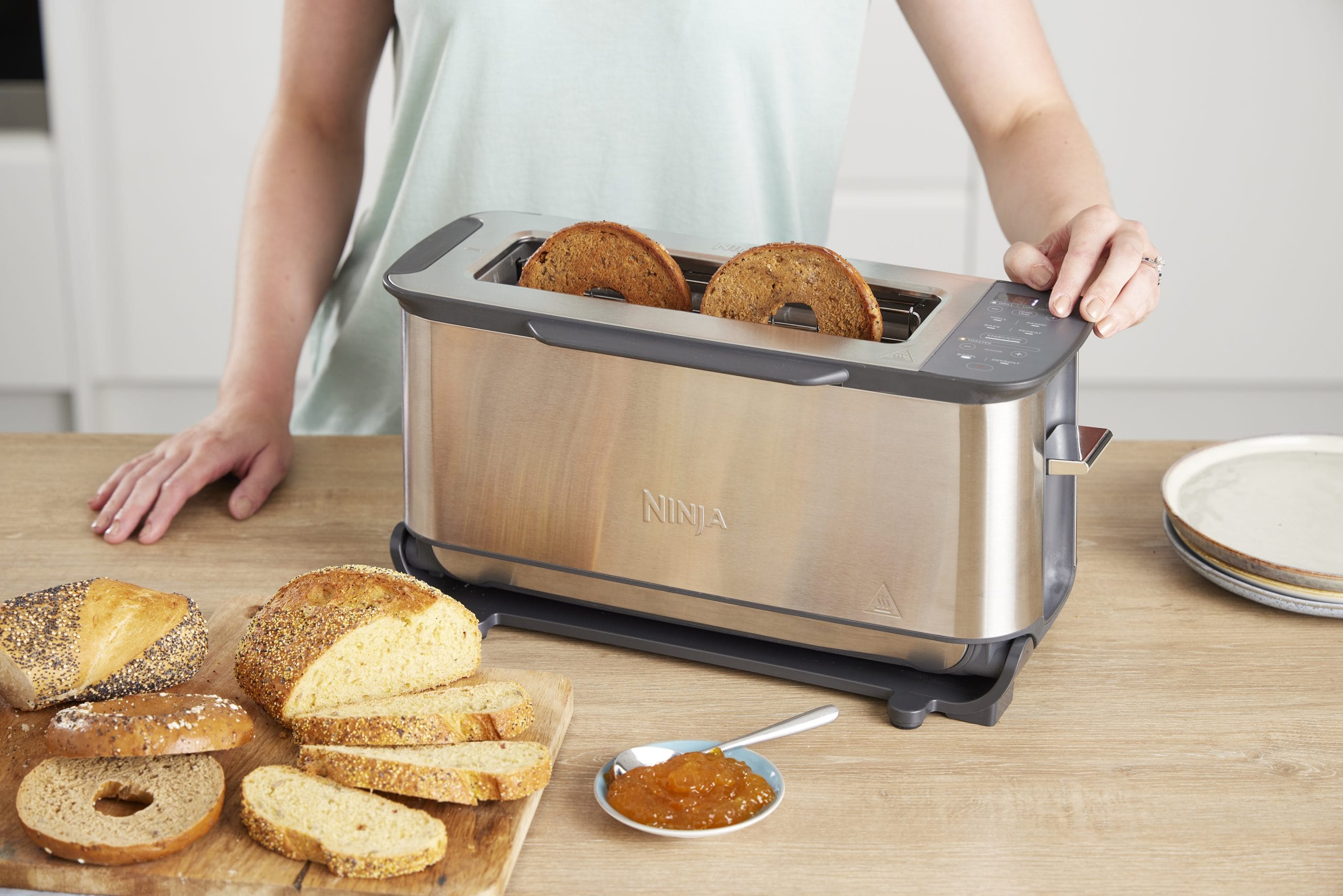 - The long, wide slot easily fits artisan bread or 2 bagel halves