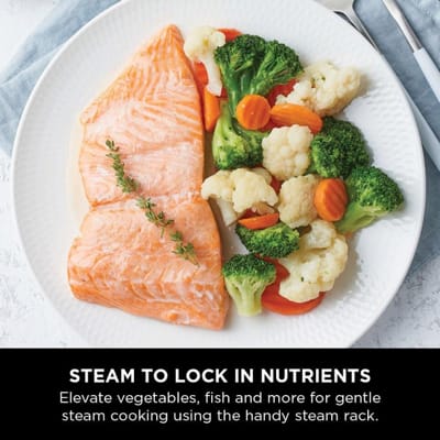 - Steam: Elevate dumplings, seasonal vegetables and more for gentle steam cooking that retains nutrients using the handy steam rack.