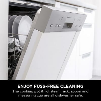 Enjoy fuss-free cleaning as the cooking pot, steam rack lid and spoon are all dishwasher safe.