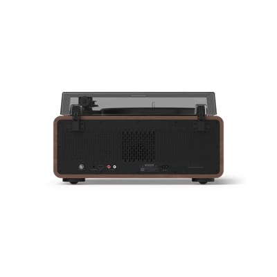 The Tina’s control knobs might look retro but their functionality is seriously modern. Use them to set the turntable’s speed, select a streaming source, choose radio presets, manage Auracast channels, adjust the volume and more. The dimmable LED display shows key information including source, and a clock is visible in standby mode.