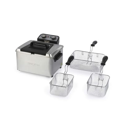 - SPACIOUS 5-LITRE CAPACITY: Perfect for family meals or party prep, this fryer includes one large 5-litre basket for big batches or two 2.5-litre baskets for cooking different foods at the same time.