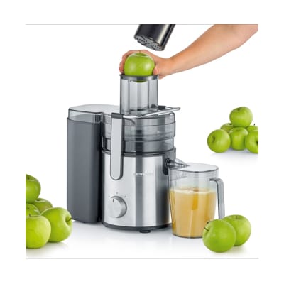 The Severin Juice Extractor is a master in its class that maximises juice extraction. It is a powerful professional juice extractor with XXL opening which gets you vitamin-rich fruit and vegetable juices in no time at the push of a button.