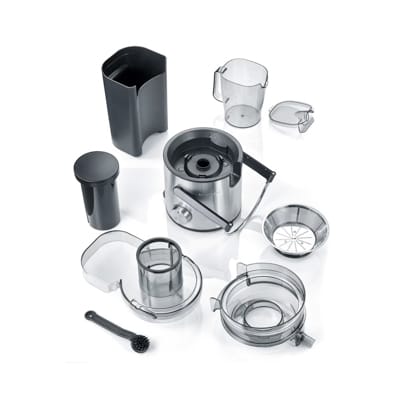 It comes with a extra wide feed opening with a diameter of 7cm that can hold whole fruits and vegetables (apples, oranges, carrots, tomatoes, beet red and others) and 2 speed levels facilitate the processing of soft and hard ingredients. Built with high-grade stainless steel housing it is driven by a noiseless, air-cooled motor running at 19,000 rpm. It also comes with a BPA-free juice extractor with foam separator, 1.1l removable, and 2.5l pulp container and stainless steel micro strainer and cutter. It’s easy to clean with a cleaning brush included, safety lock system and non-slip feet.