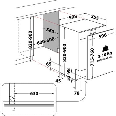 This Whirlpool integrated Dishwasher features: black color. Outstanding B energy rating, for reduced energy consumption. Adjustable feet, for perfect stability on uneven floors and surfaces. Innovative technology ensuring extra silent performance, for a very quiet appliance. Superb cleaning performance, for ideal washing results.